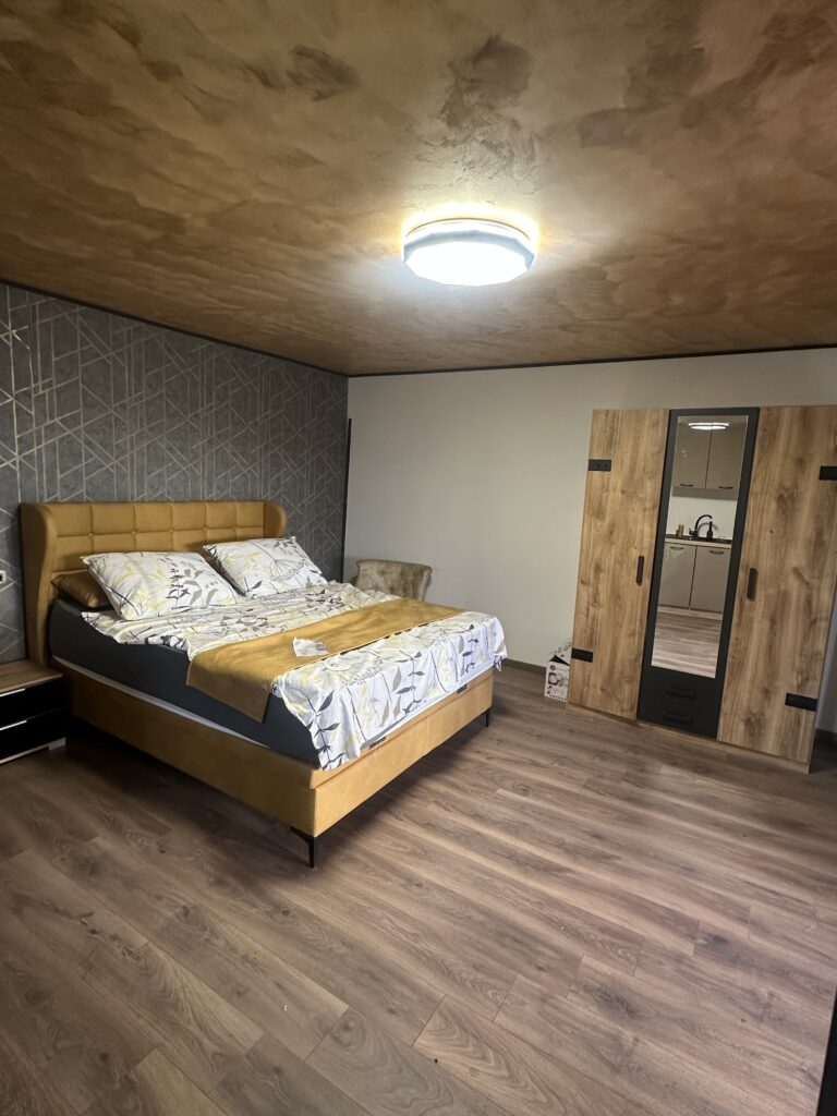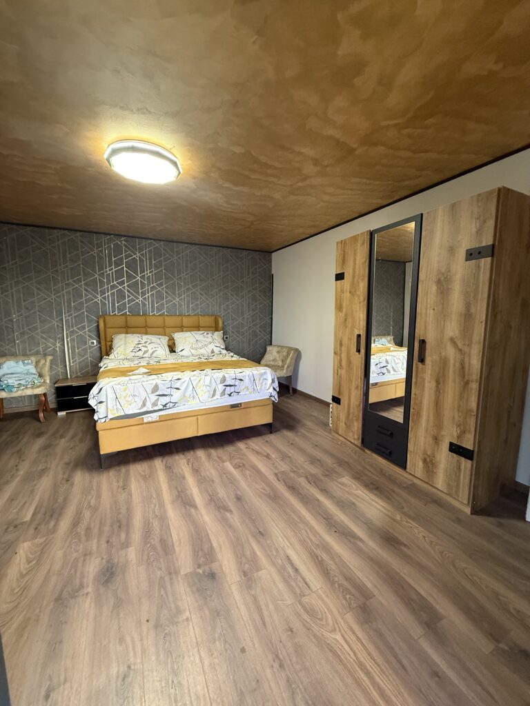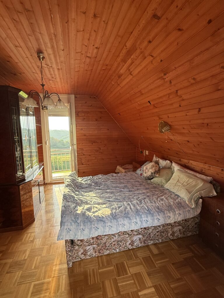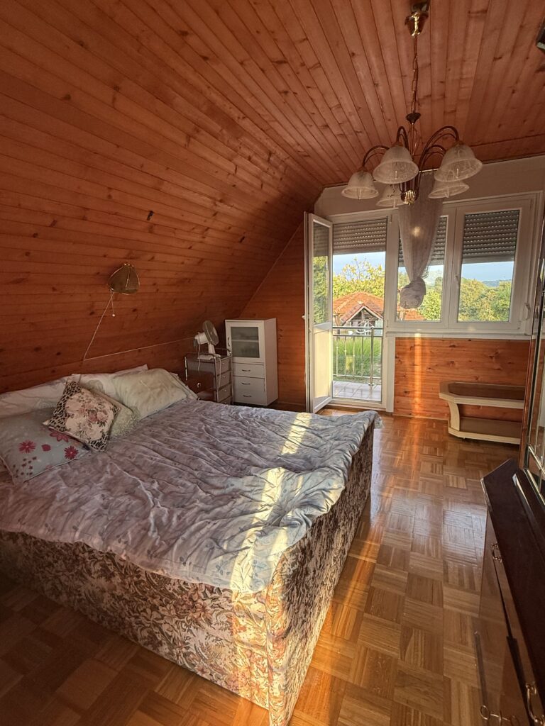 Nekretnina je odmah useljiva, a unutrašnjost je uređena jednostavno i uredno – s modernom kupaonicom, kuhinjom te toplim drvenim oblogama u spavaćem prostoru.